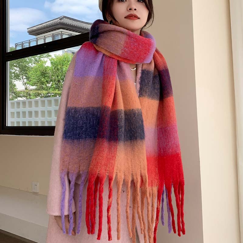 scarf for women in winter, with European style, fashionable imitation cashmere scarf, with checkered design, stylish and elegant.